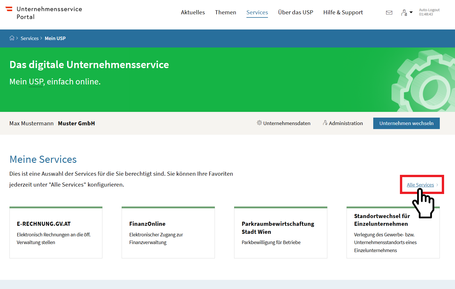 Öffnen Sie das Unternehmensserviceportal unter https://mein.usp.gv.at
